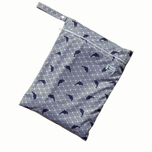 The medium is 30cm x 40cm made of water-resistant polyester (PUL), a zip closing and a handle with a snap fastening.